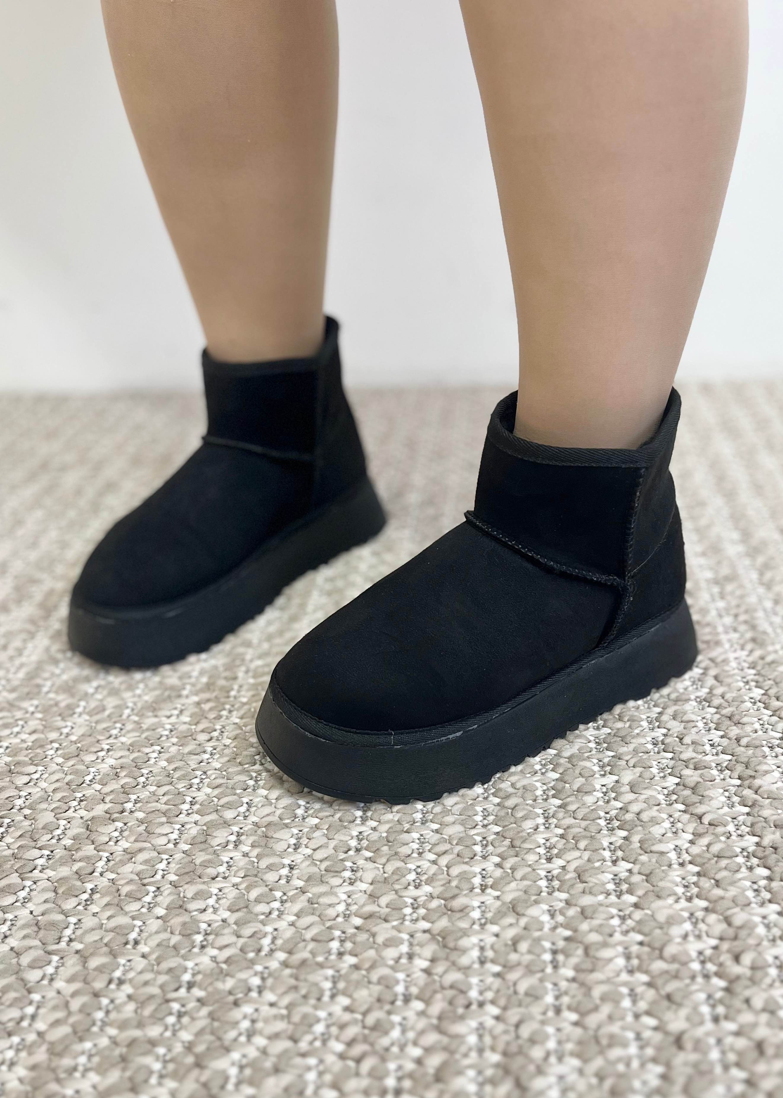 بوت مشکی، نمای بغل – نمایش جزئیات دوخت، آستر خز نرم و زیره سبک