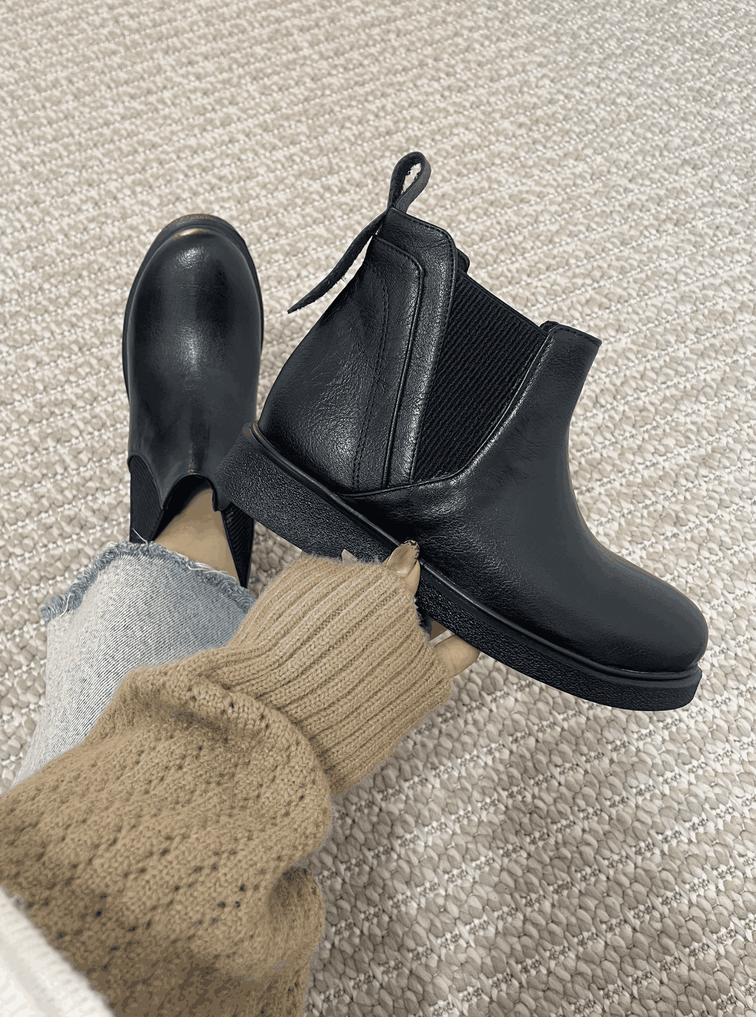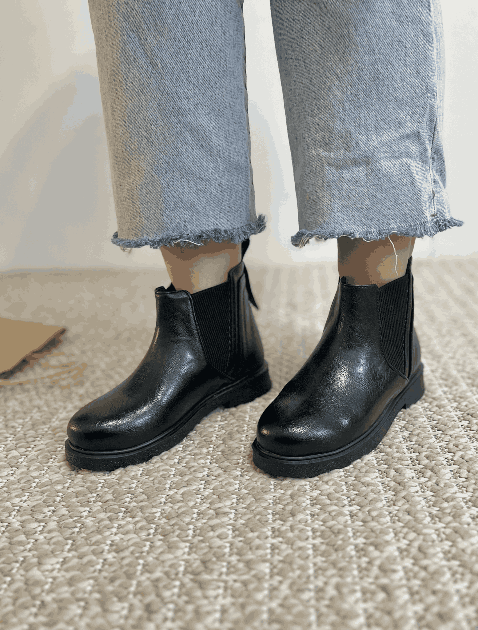 جزئیات پاخور بوت زنانه کش‌دار مشکی؛ نمای نزدیک از فرم روی پا